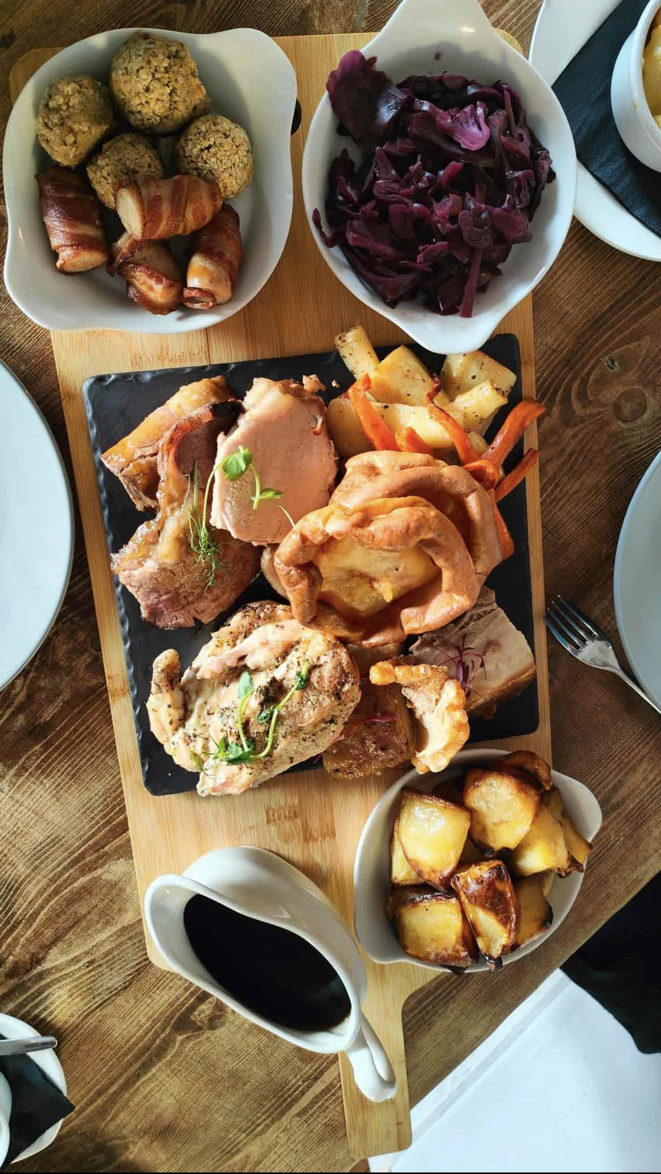 Enjoy the ultimate roast experience with a sharing board for 2, including all the roast meats, roast potatoes, red cabbage, seasonal veg, pigs in blankets, stuffing, crackling, yorkie puds, cauli cheese & lashings of gravy all for just 31.95 per person.